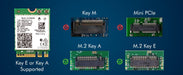 • El módulo mide 22 x 30 mm y solo debe usarse en computadoras portátiles con un conector M.2 y un zócalo Key A o E estándar o en una computadora de escritorio con una ranura M.2 impresa con el logotipo "WiFi".